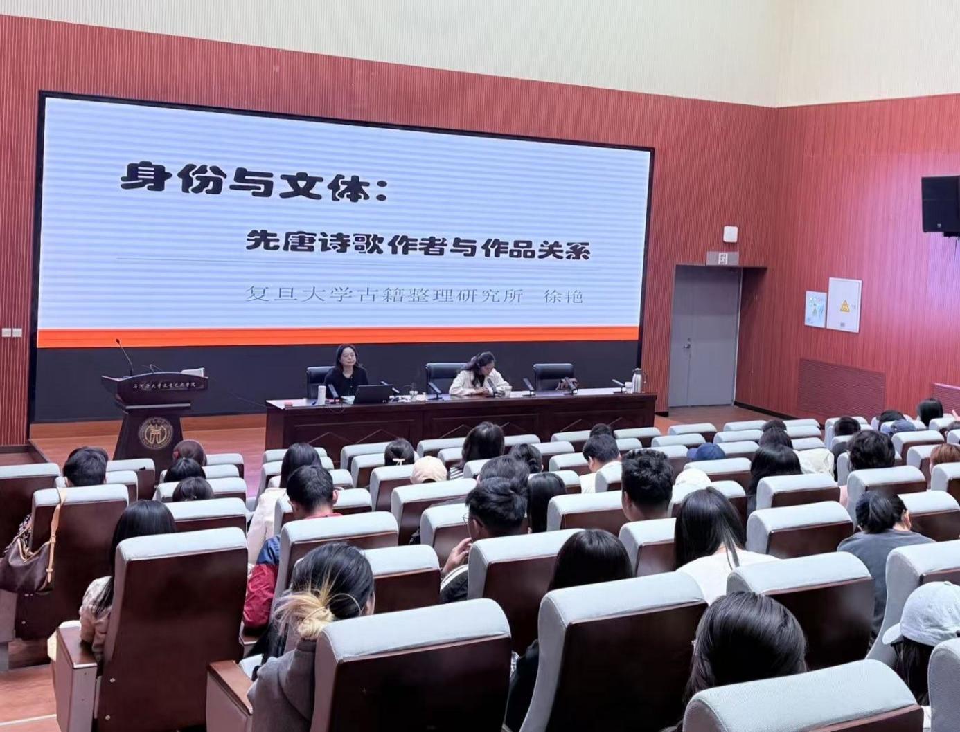 919日,欧美色情 特邀复旦大学古籍整理研究所徐艳教授,在校园内开展先唐诗歌研究专题讲座。本次讲座以“身份与文体:先唐诗歌作者与作品关系”为核心主题,徐教授凭借深厚的学术积淀与清晰的逻辑阐释,既展现了先唐诗歌研究领域的前沿视角,也为师生搭建了跨校学术交流的桥梁,讲座吸引了众多师生参与。
