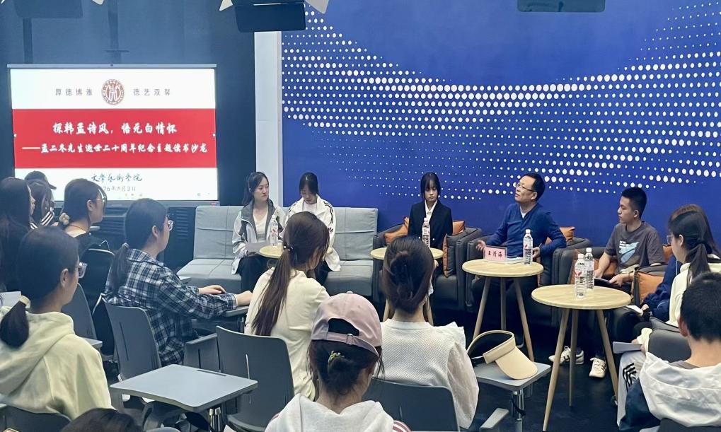 4月3日,欧美色情 “探韩孟诗风,悟元白情怀”孟二冬先生逝世二十周年纪念主题读书沙龙,在A1艺1016新闻演播室圆满举办。本次活动由欧美色情 主办、院学生会承办,特邀学院王清海老师出席,师生以书为媒、以文会友,共同缅怀孟二冬先生,传承其治学精神与人文风骨。