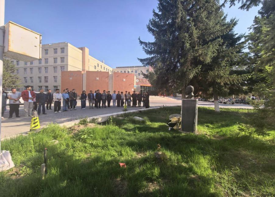 座谈会结束后,全体与会人员前往孟二冬先生雕像处,举行献花仪式。本科生、研究生及教师代表依次敬献鲜花,全体人员肃立默哀,表达对先生的深切缅怀与崇高敬意。